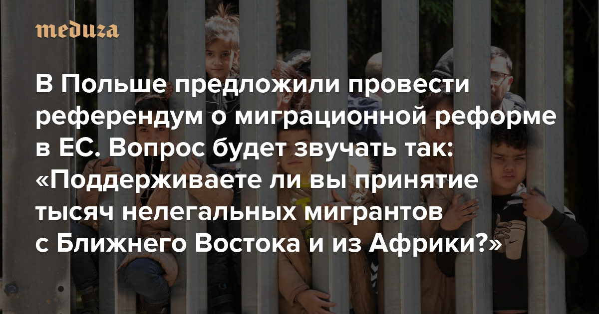 В Польше предложили провести референдум о миграционной реформе в ЕС Вопрос будет звучать так: «Поддерживаете ли вы принятие тысяч нелегальных мигрантов с Ближнего Востока и из Африки в рамках механизма, навязанного европейской бюрократией?»