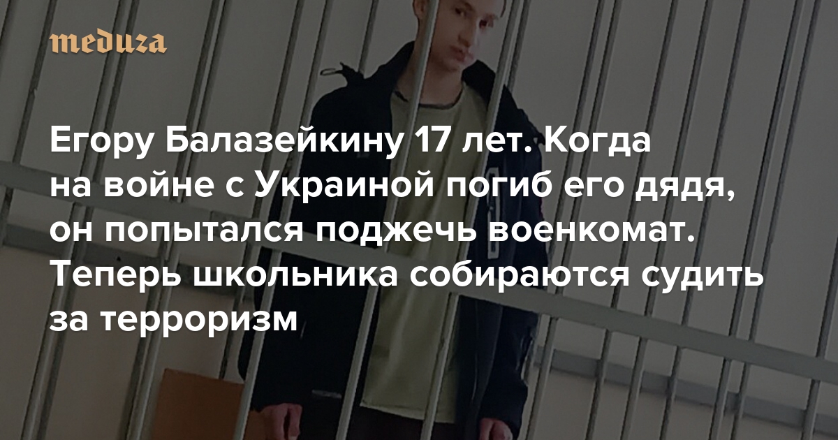 Егору Балазейкину 17 лет. Когда на войне с Украиной погиб его дядя, он попытался поджечь военкомат Теперь школьника собираются судить за терроризм