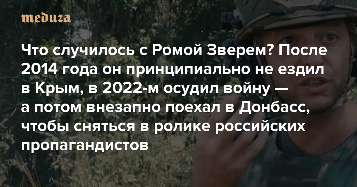 Что случилось с Ромой Зверем? После 2014 года он принципиально не ездил в Крым, в 2022-м осудил войну — а потом внезапно отправился в Донбасс, чтобы сняться в ролике российских пропагандистов