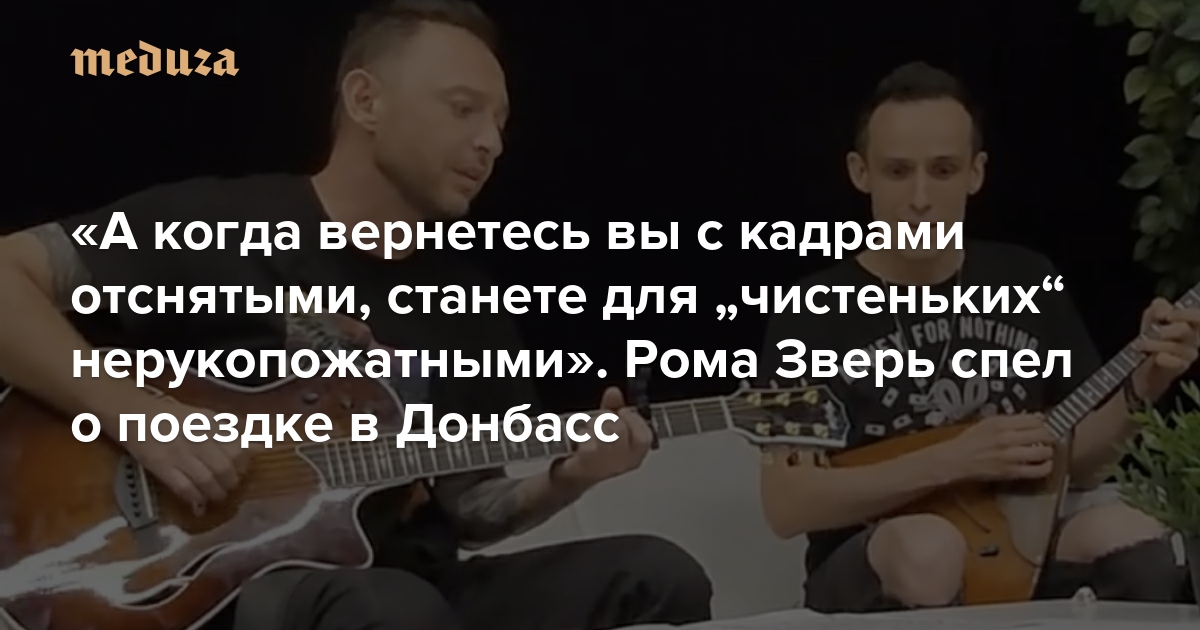 Музыканты группы «Звери» Роман Билык (Рома Зверь) и Герман Осипов записали на видео песню, написанную после их поездки в аннексированную ДНР. Запись появилась в фейсбуке Осипова, внимание на нее обратило издание «Холод».