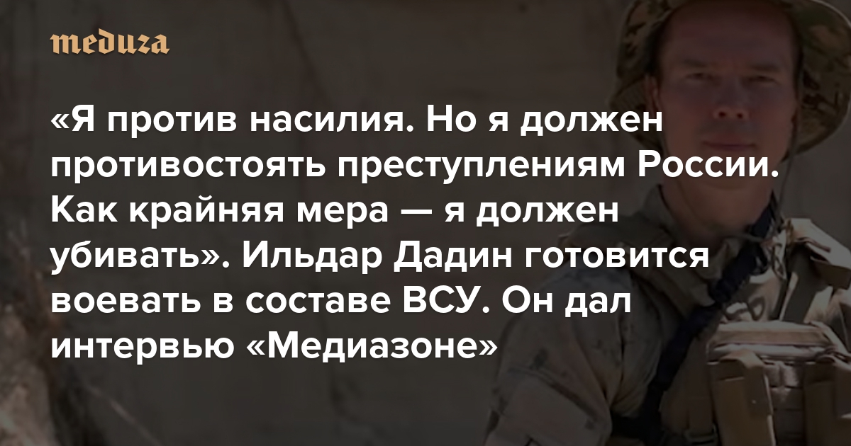 «Я против насилия. Но я должен противостоять преступлениям России. Как крайняя мера — я должен убивать» Ильдар Дадин готовится воевать в составе ВСУ. Он дал интервью «Медиазоне» — о мирном протесте и вооруженном сопротивлении
