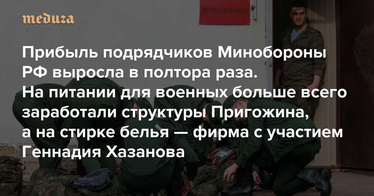 Прибыль подрядчиков Минобороны РФ за первый год войны выросла в полтора раза На питании для военных больше всего заработали структуры Пригожина, а на стирке белья — фирма с участием Геннадия Хазанова