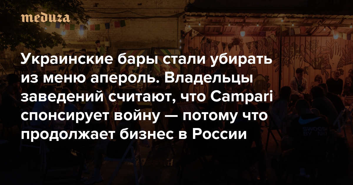 Украинские бары стали убирать из меню апероль Владельцы заведений считают, что Campari спонсирует войну — потому что продолжает бизнес в России