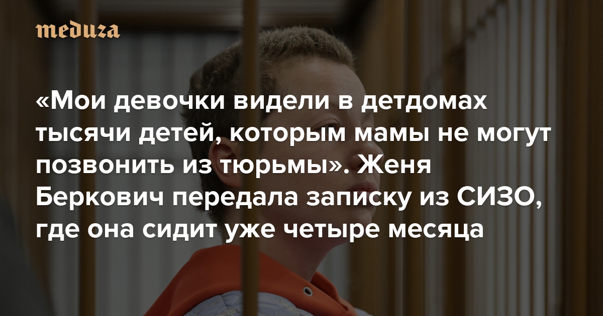 «Мои девочки видели в детдомах тысячи детей, которым мамы не могут позвонить из тюрьмы» Женя Беркович передала записку из СИЗО, где она сидит уже четыре месяца