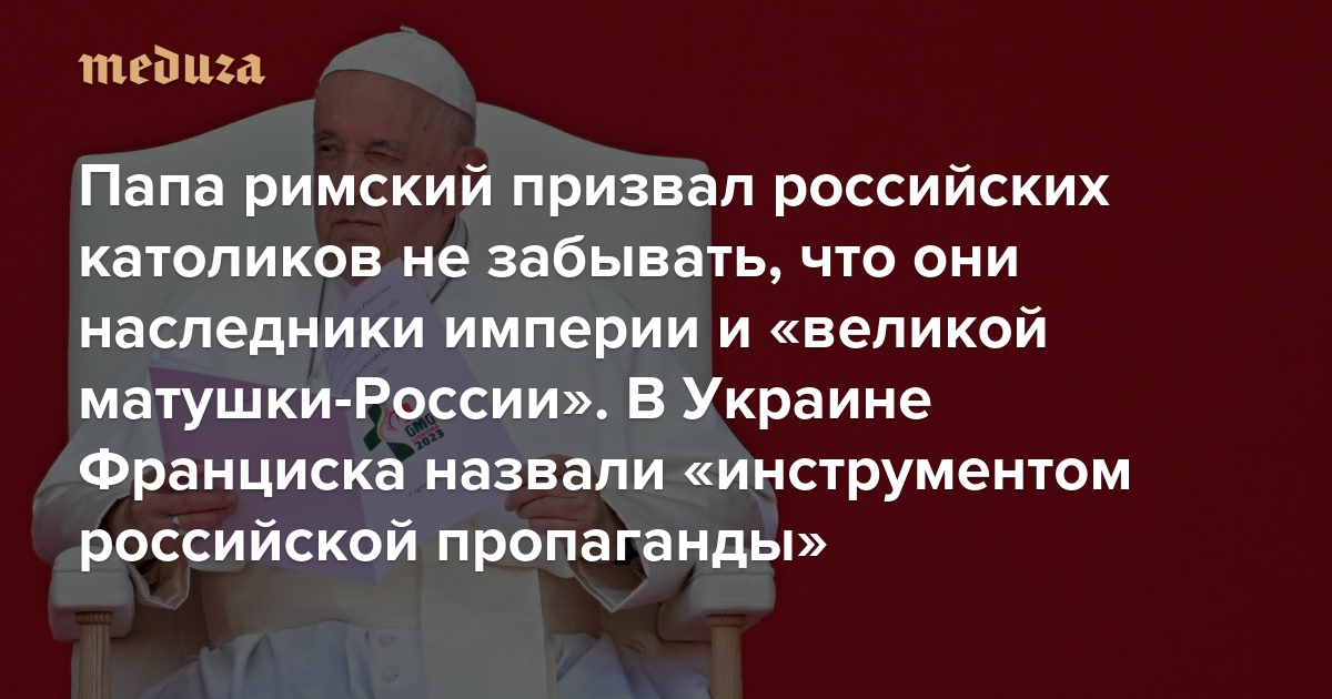 Папа римский призвал российских католиков не забывать, что они наследники империи и «великой матушки-России» В Украине Франциска назвали «инструментом российской пропаганды»