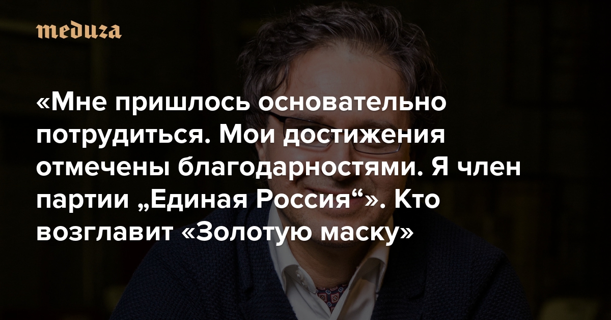 «Мне пришлось основательно потрудиться. Мои достижения отмечены благодарностями. Я член партии „Единая Россия“» Избранные фрагменты «творческого эссе» Владимира Мишарина. Он возглавит «Золотую маску»