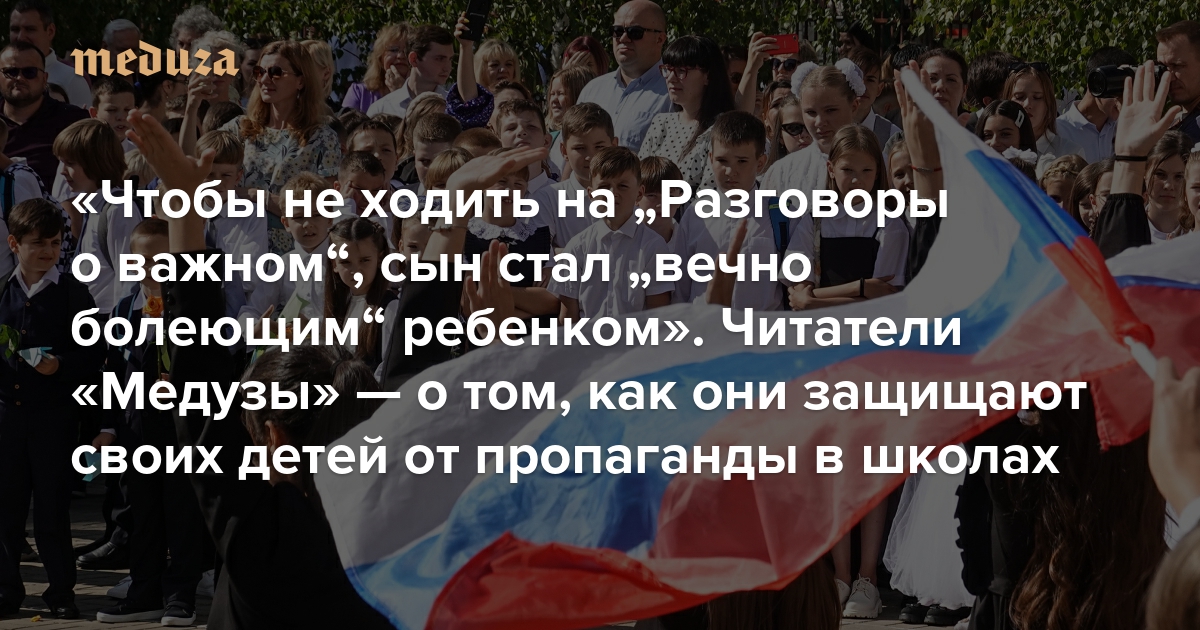 «Чтобы не ходить на „Разговоры о важном“, сын стал „вечно болеющим“ ребенком» Читатели «Медузы» — о том, как они защищают своих детей от пропаганды в школах
