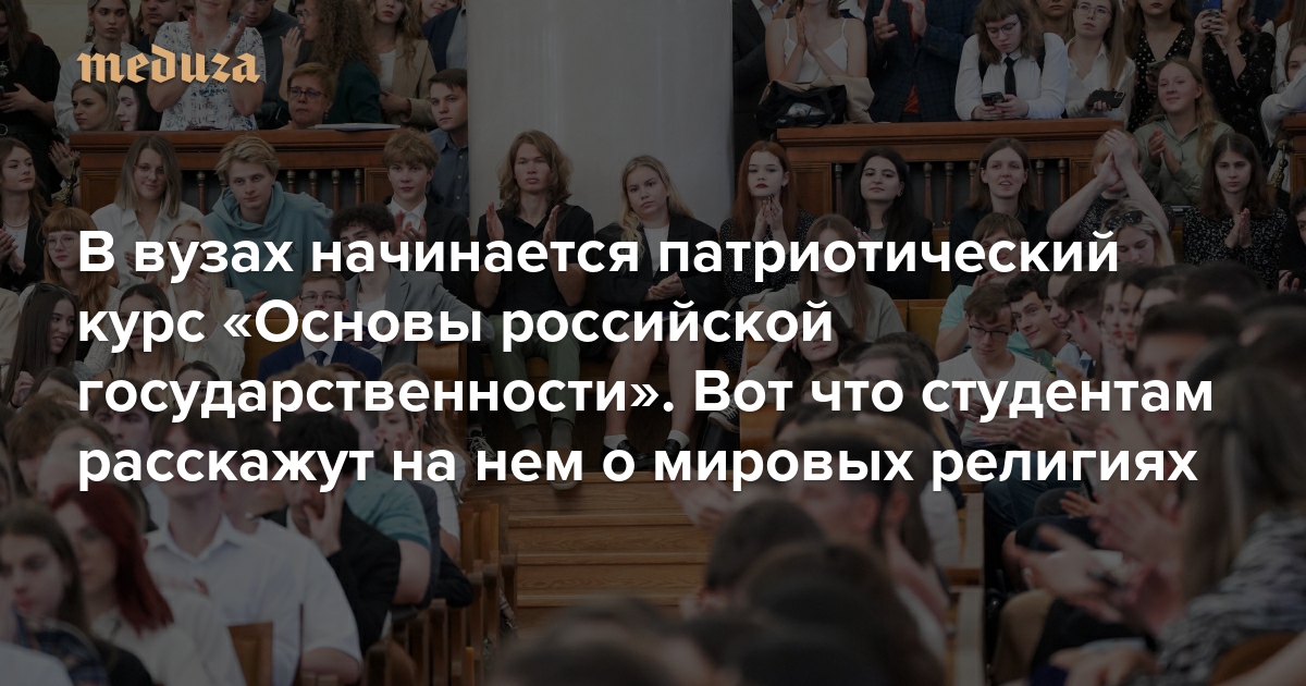 Как рассказал «Медузе» собеседник, близкий к разработчикам курса «Основы российской государственности», скоро на сайте общества «Знание» также появятся ролики об исламе и иудаизме. «Цели сделать студентов религиозными нет. Скорее, надо представить религии как полезное [государству] дело, чтобы молодые люди смотрели на них через эту призму», — резюмирует он.