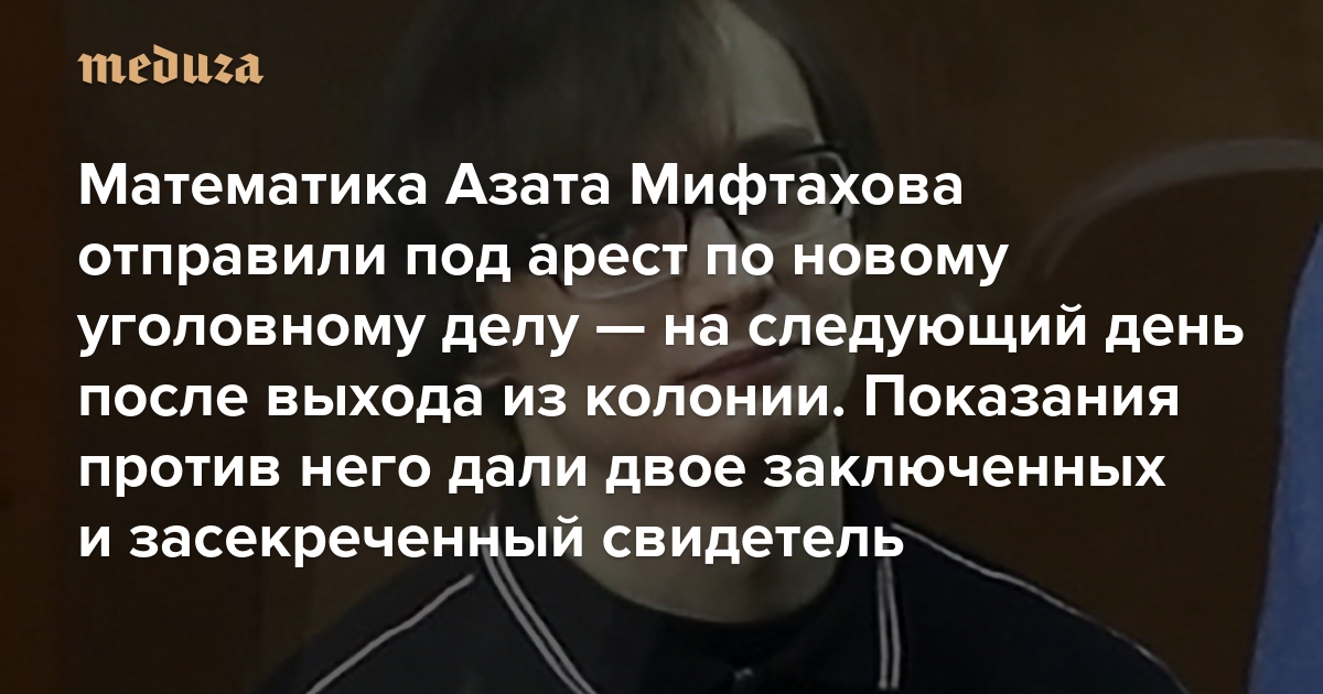 Математика Азата Мифтахова отправили под арест по новому уголовному делу — на следующий день после выхода из колонии Показания против него дали двое заключенных и засекреченный свидетель