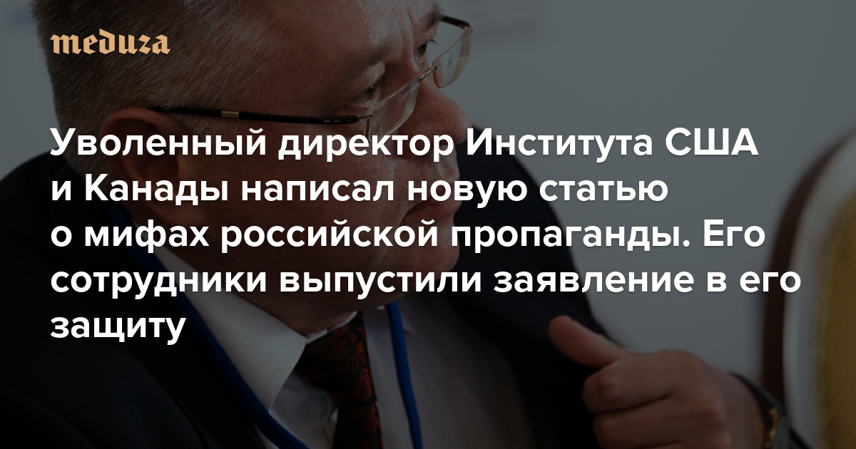 Уволенный директор Института США и Канады написал новую статью о мифах российской пропаганды. Его сотрудники выпустили заявление в его защиту Оба текста были опубликованы на сайте «Независимой газеты». Заявление потом удалили