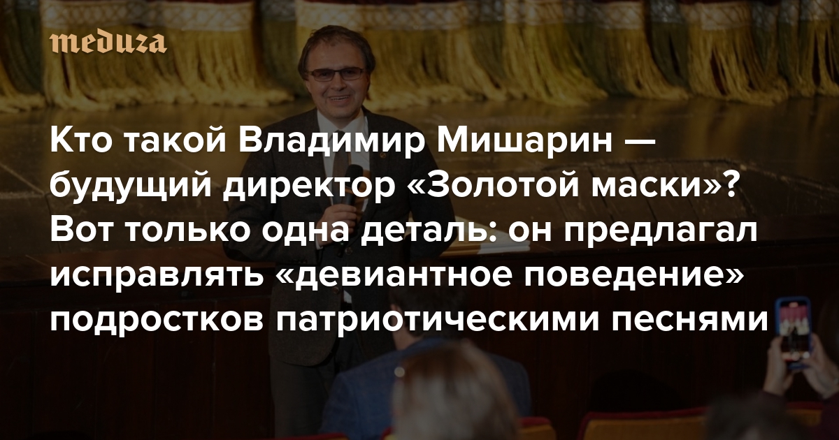 Чиновник с рождения Кто такой Владимир Мишарин — будущий директор «Золотой маски»? Вот только одна деталь: в 2018-м он предлагал исправлять «девиантное поведение» подростков патриотическими песнями