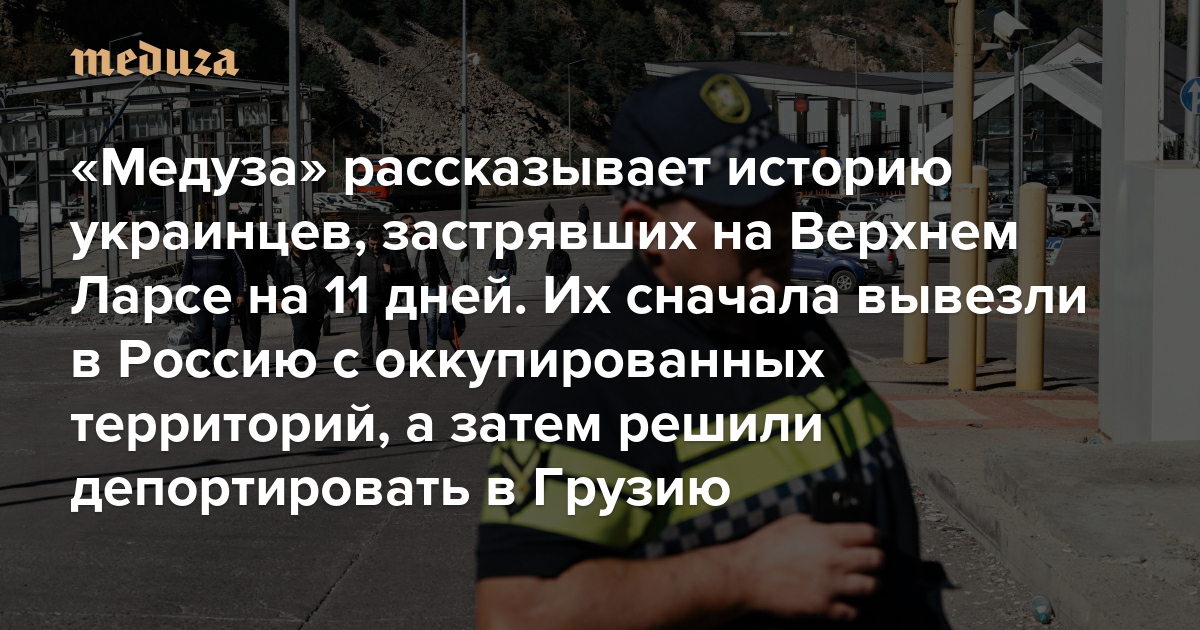 «Якобы мы несем угрозу грузинскому народу» «Медуза» рассказывает историю украинцев, застрявших на Верхнем Ларсе на 11 дней. Их сначала вывезли в Россию с оккупированных территорий, а затем решили депортировать в Грузию