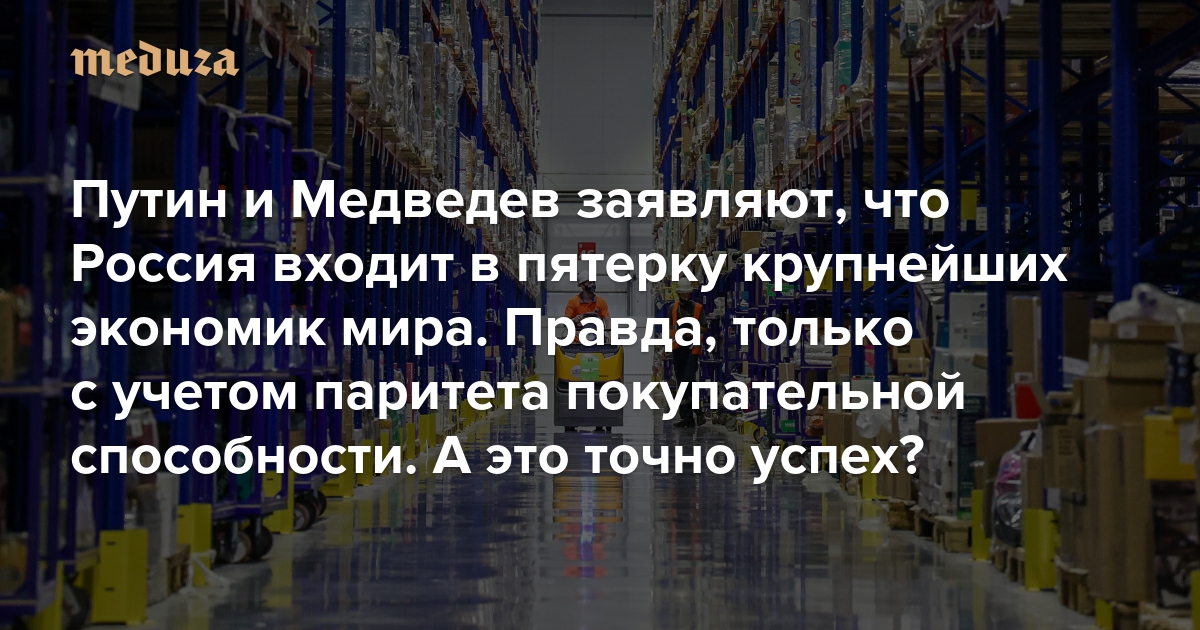 Путин и Медведев заявляют, что Россия входит в пятерку крупнейших экономик мира. Правда, только с учетом паритета покупательной способности. А это точно успех? И что вообще это за показатель?