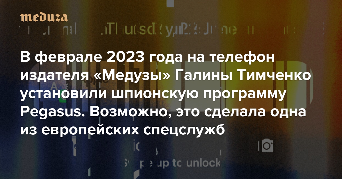 «Мы все испугались. Но делали вид, что нет» В феврале 2023 года на телефон издателя «Медузы» Галины Тимченко установили шпионскую программу Pegasus. Возможно, это сделала одна из европейских спецслужб