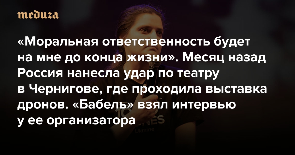 «Моральная ответственность будет на мне до конца жизни» Месяц назад Россия нанесла удар по театру в Чернигове, где проходила выставка дронов. «Бабель» взял интервью у ее организатора