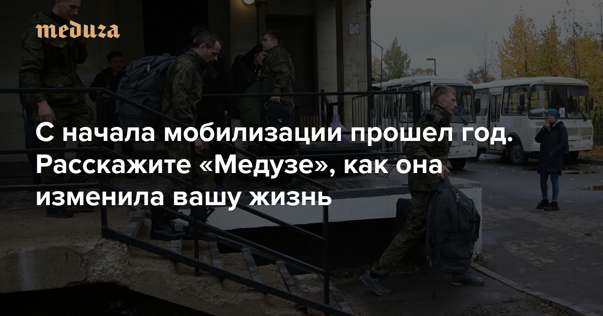 21 сентября 2023 года исполнится ровно год с начала мобилизации (указ о ее окончании Владимир Путин так и не подписал). Тот день изменил жизни тысяч россиян — если не миллионов. Одни, не желая идти на войну, уехали из страны. Другие начали скрываться от военкоматов внутри России. Кто-то отправился на фронт. Расскажите «Медузе», как мобилизация повлияла на вас и ваших близких. Некоторые из этих историй мы опубликуем.