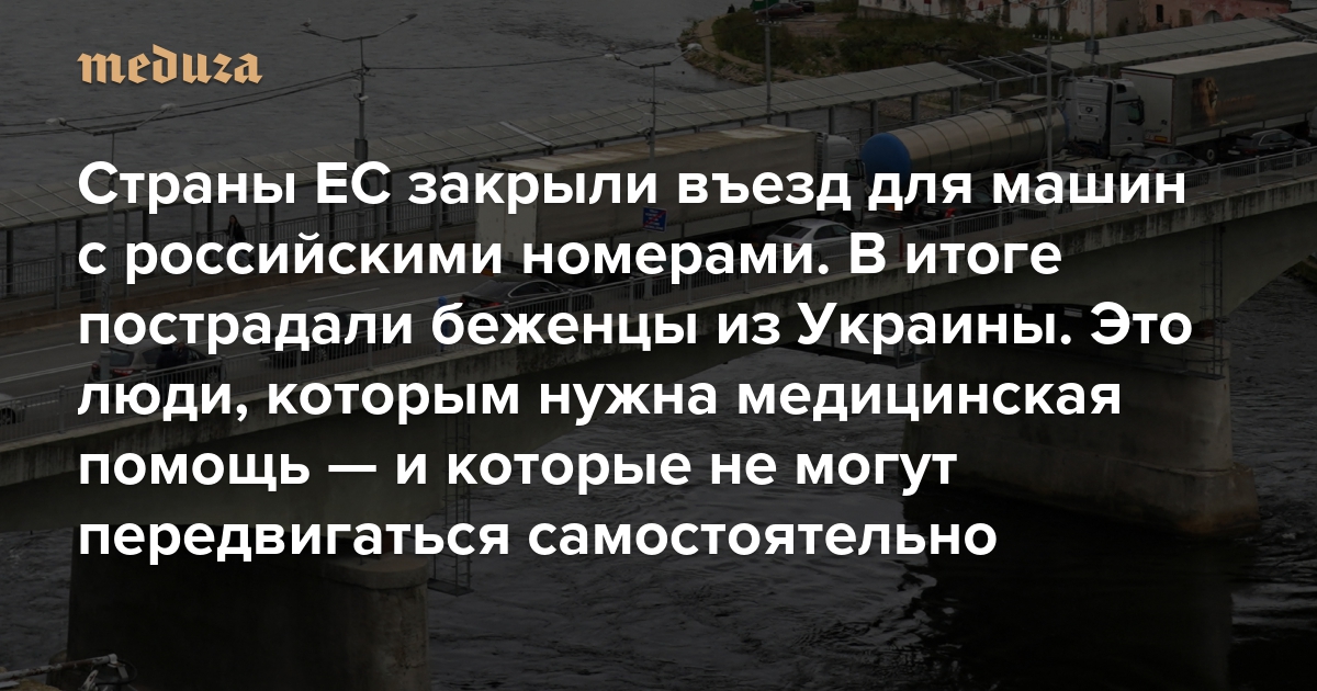 Страны ЕС закрыли въезд для машин с российскими номерами. В итоге пострадали беженцы из Украины Это люди, которым нужна медицинская помощь — и которые не могут передвигаться самостоятельно
