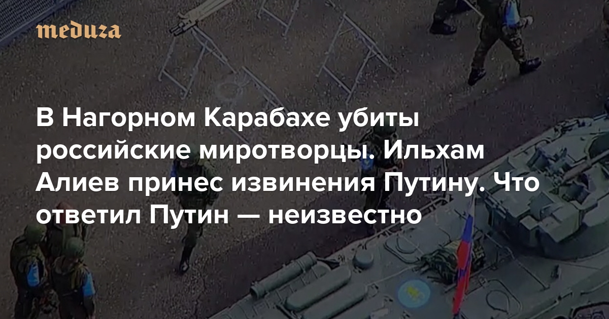 В Нагорном Карабахе убиты российские миротворцы. Ильхам Алиев принес извинения Путину. Что ответил Путин — неизвестно Среди погибших — заместитель командующего подводными силами Северного флота