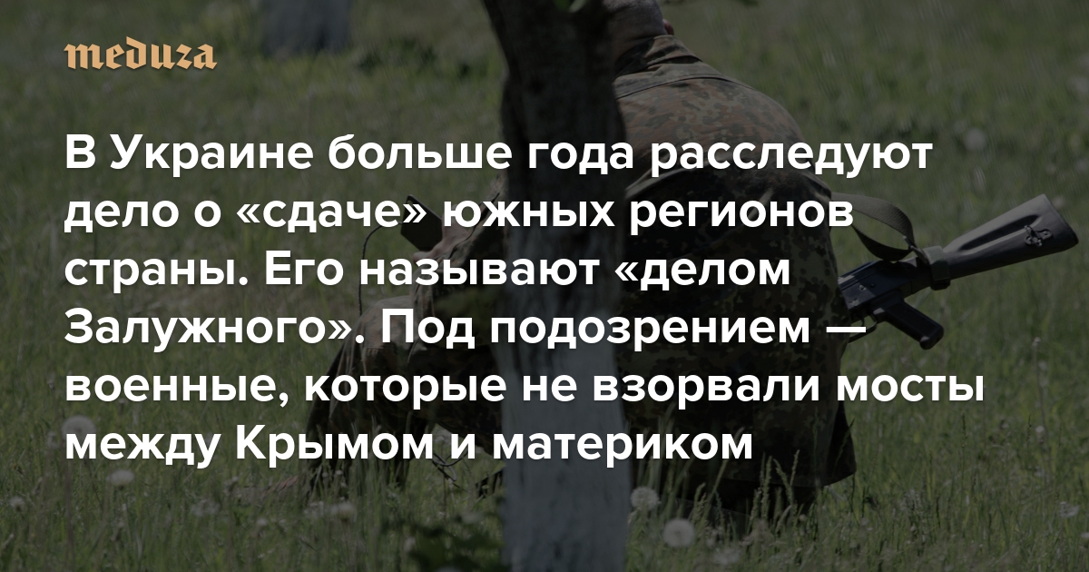 В самом начале полномасштабного вторжения российские войска сумели быстро продвинуться из аннексированного Крыма на материковую часть Украины в Херсонскую и Запорожскую области и в короткий срок оккупировали территорию, превышающую по размерам Швейцарию. Кремль уже объявил о формальной аннексии этих украинских регионов. ВСУ в течение нескольких месяцев продолжают контрнаступление на южном фронте, пытаясь освободить свои территории. Государственное бюро расследований Украины еще в апреле 2022 года открыло дело о ненадлежащей обороне Херсонской области. Оно расследуется по части 1-й статьи 111 и части 3-й статьи 425 УК Украины — «государственная измена» и «халатное отношение к военной службе». Как считает следствие, к оккупации региона среди прочего привело то, что не были вовремя взорваны мосты между Крымом и материком, которые ВСУ заблаговременно заминировали, готовясь к войне. «Украинская служба Би-би-си» и «Украинская правда» рассказали, как продвигается расследование о «сдаче Юга», которое уже называют «делом Залужного». «Медуза» пересказывает главное из этих материалов.