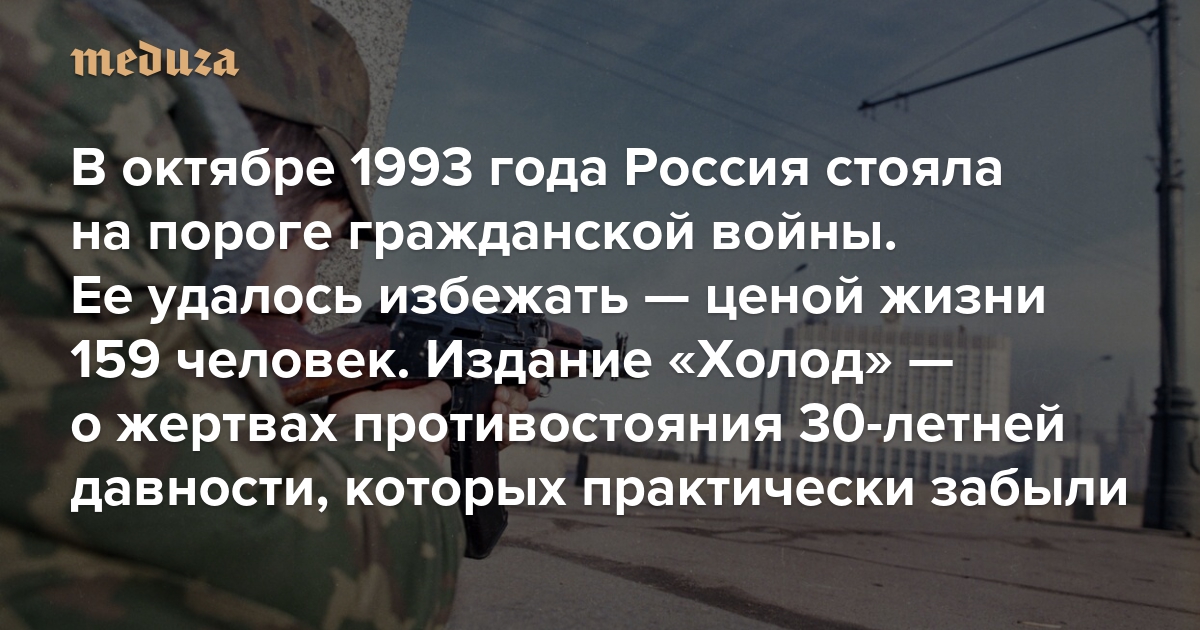 В октябре 1993 года Россия стояла на пороге гражданской войны. Ее удалось избежать — ценой жизни 159 человек Публикуем текст «Холода» — о жертвах противостояния 30-летней давности, которых практически забыли