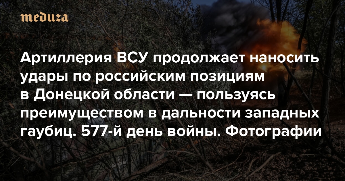 Артиллерия ВСУ продолжает наносить удары по российским позициям в Донецкой области — пользуясь преимуществом в дальности западных гаубиц Пятьсот семьдесят седьмой день войны. Фотографии