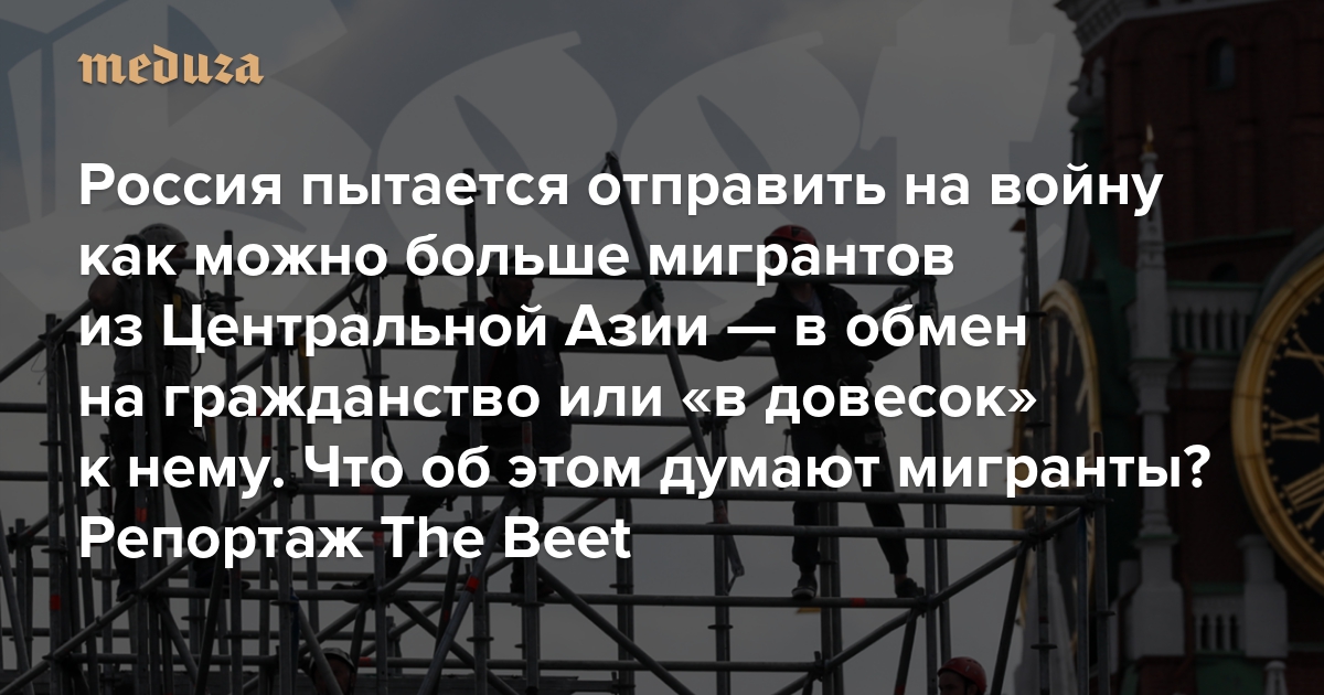Россия пытается отправить на войну с Украиной как можно больше мигрантов из Центральной Азии — в обмен на гражданство или «в довесок» к нему Что об этом думают мигранты? Репортаж The Beet