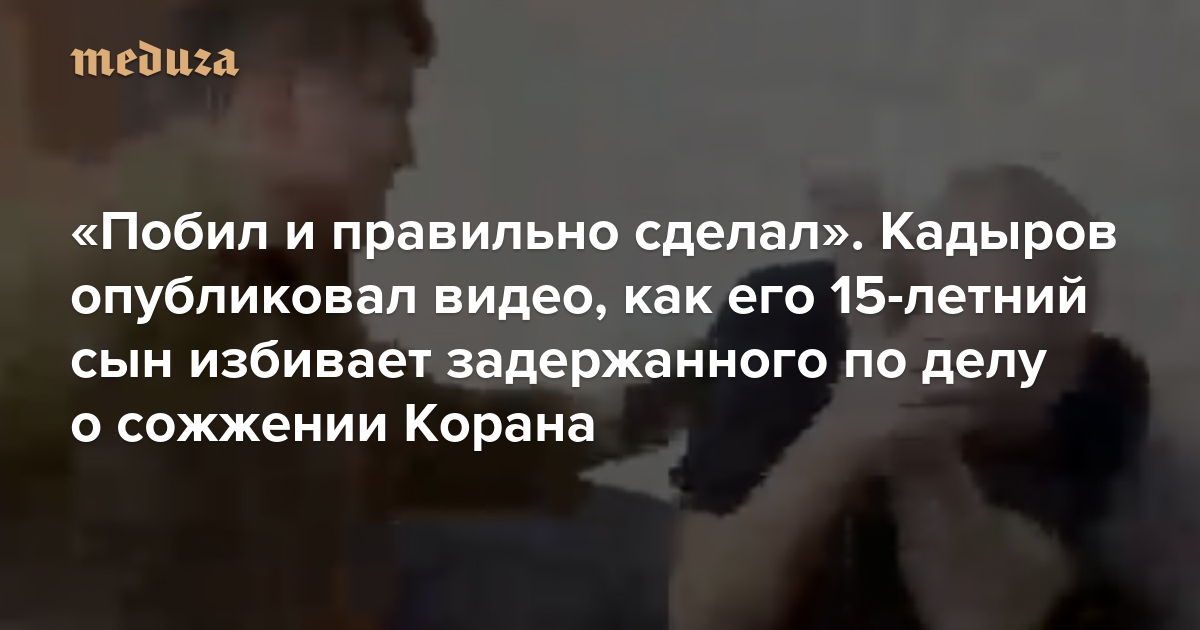 Рамзан Кадыров подтвердил, что его 15-летний сын Адам избил жителя Волгограда Никиту Журавеля, обвиняемого по делу о сожжении Корана. В своем телеграм-канале глава Чечни опубликовал короткое видео, на котором снято, как его сын избивает задержанного.