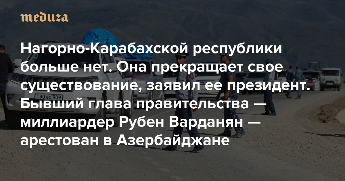 Нагорно-Карабахской республики больше нет Она прекращает свое существование, заявил ее президент. Бывший глава правительства — миллиардер Рубен Варданян — арестован в Азербайджане