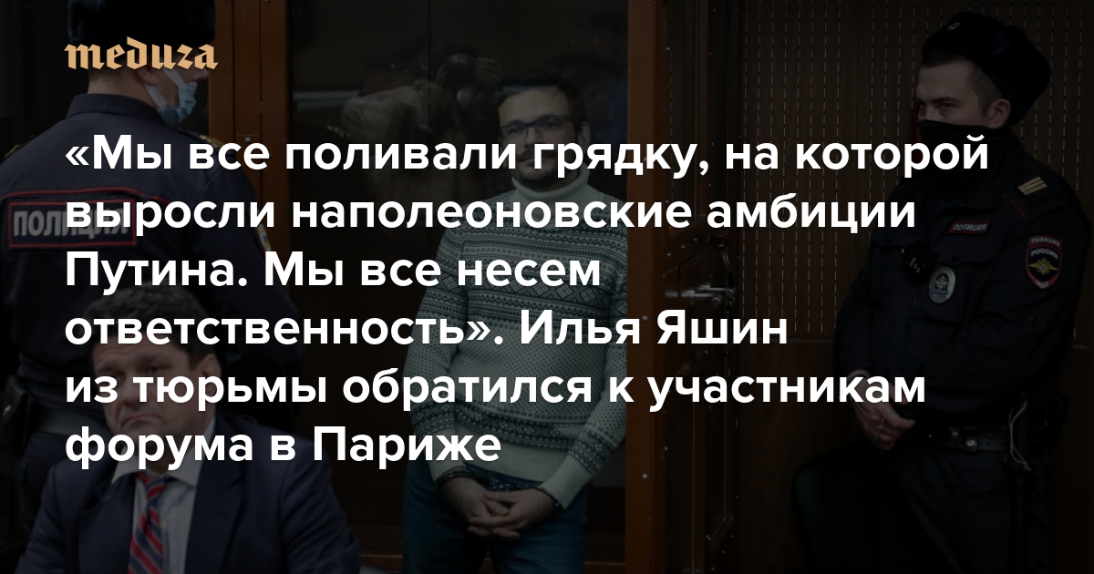 «Давайте откровенно признаем: мы все поливали грядку, на которой выросли наполеоновские амбиции Путина. Мы все несем ответственность за последствия» Илья Яшин из тюрьмы обратился к участникам форума в Париже