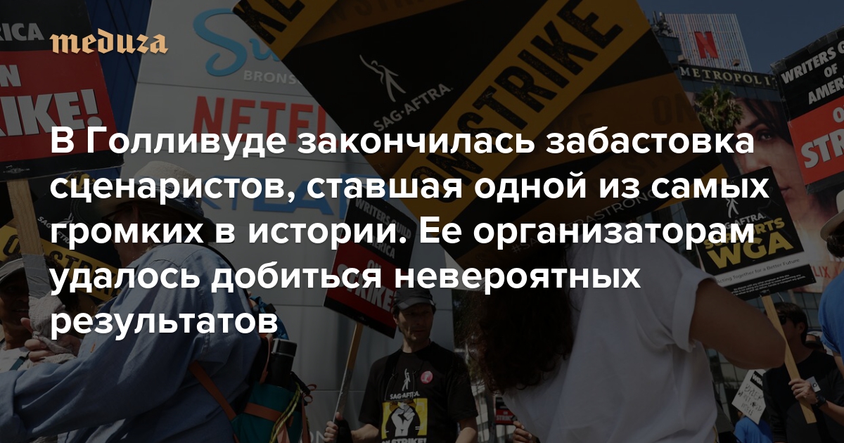 В начале мая Американская гильдия сценаристов США (WGA) объявила о начале забастовки, которая стала одной из самых громких в истории Голливуда. Ей предшествовали переговоры с Альянсом продюсеров кино и телевидения (AMPTP) об условиях нового трехгодичного контракта: сценаристы требовали пересмотра трудовых условий. Этот контракт регулирует авторские права, минимальную оплату и процедуру выплаты роялти. Когда переговоры зашли в тупик, гильдия остановила работу. До конца сентября авторы отказывались работать над сценариями фильмов и сериалов, в том числе тех, которые уже находились в производстве, — и практически парализовали работу главной мировой киноплощадки. В итоге трудовой спор в Калифорнии обсуждал весь мир. «Медуза» рассказывает, как сценаристам в результате почти пяти месяцев борьбы удалось одержать победу.