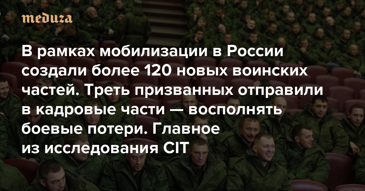 В рамках мобилизации в России создали более 120 новых воинских частей. Треть призванных отправили в кадровые части — восполнять боевые потери Главное из исследования Conflict Intelligence Team