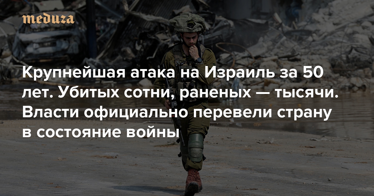 Крупнейшая атака на Израиль за 50 лет. Главное Убитых сотни, раненых — тысячи. Израильские власти официально перевели страну в состояние войны. Армия намерена взять под контроль сектор Газа