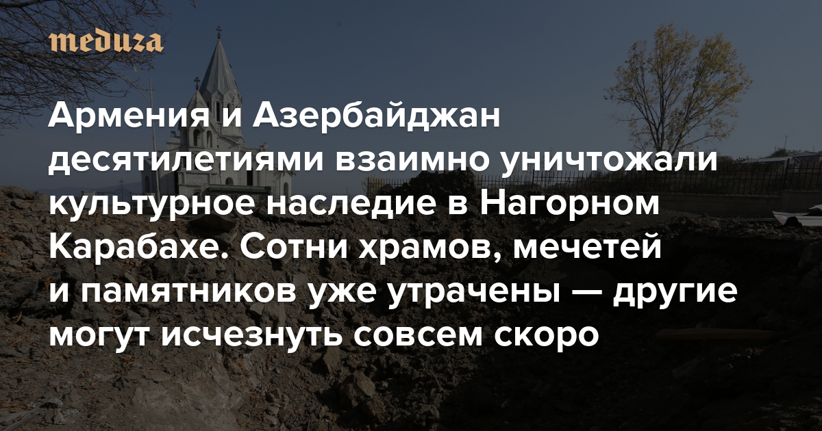Конфликт Армении и Азербайджана в Нагорном Карабахе — самая долгая война на территории бывшего СССР: она тянется с конца 1980-х и унесла жизни около 20 тысяч человек. Война сделала беженцами сотни тысяч человек и поставила под угрозу исчезновения множество архитектурных и исторических памятников — как армянских, так и азербайджанских. «Медуза» рассказывает, как боевые действия в Нагорном Карабахе стирали с лица земли наследие двух враждующих культур — и почему международные организации не смогли сделать ничего, чтобы его спасти.