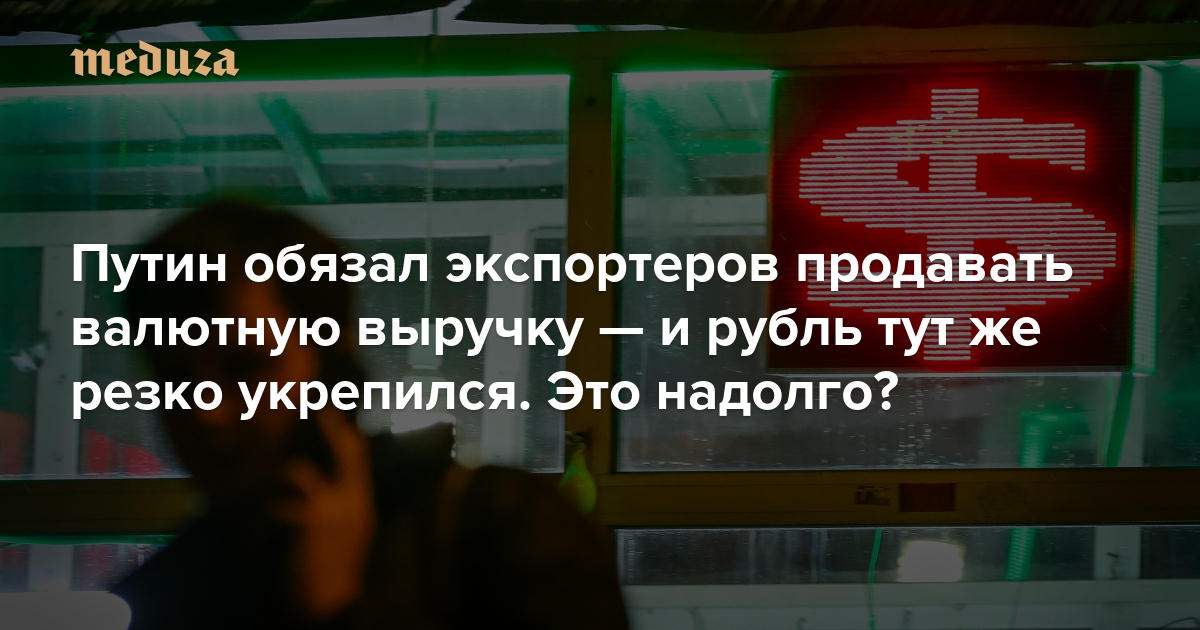 Путин обязал экспортеров продавать валютную выручку — и рубль тут же резко укрепился. Это надолго? Возможно, нового обвала хотят не допустить как минимум до выборов президента в марте 2024-го