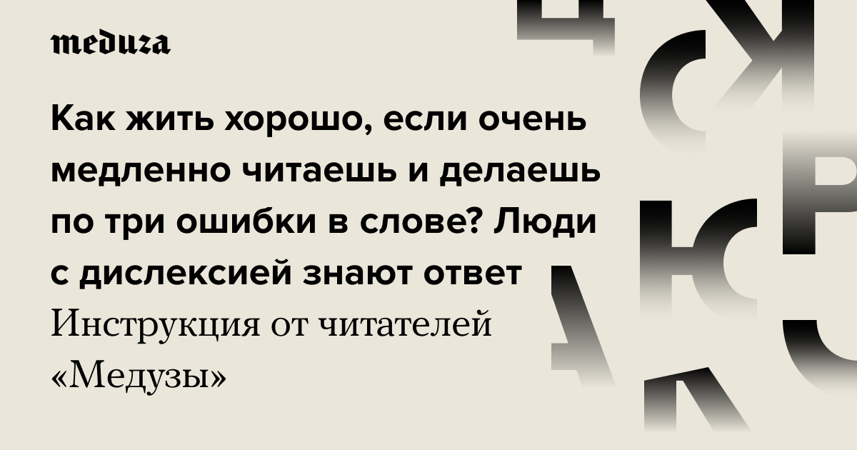 Как жить хорошо, если очень медленно читаешь и делаешь по три ошибки в слове? Люди с дислексией знают ответ Инструкция от читателей «Медузы»