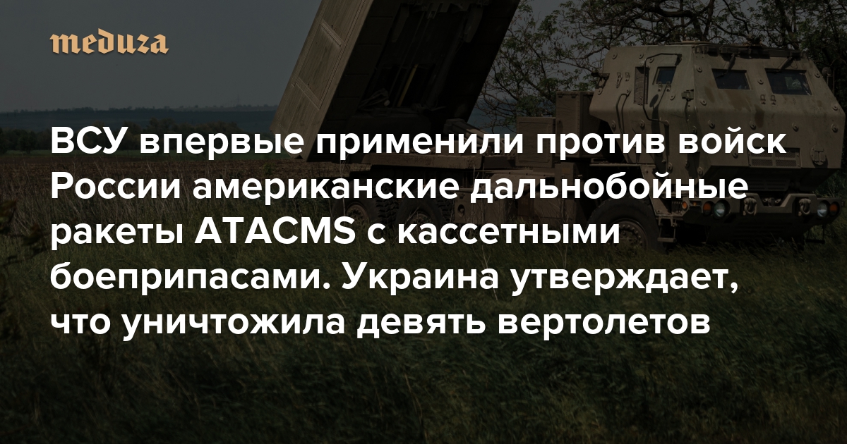 ВСУ впервые применили против войск России американские дальнобойные ракеты ATACMS с кассетными боеприпасами Украина утверждает, что уничтожила девять вертолетов