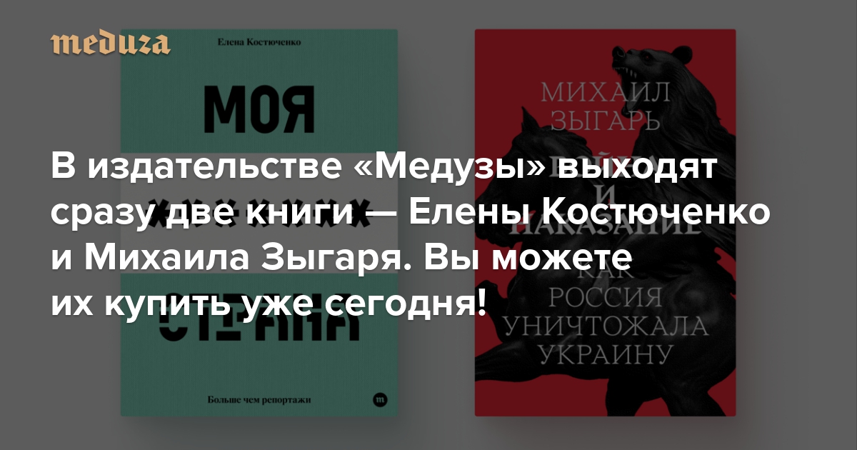 В издательстве «Медузы» выходят сразу две книги — Елены Костюченко и Михаила Зыгаря. Вы можете их купить уже сегодня!