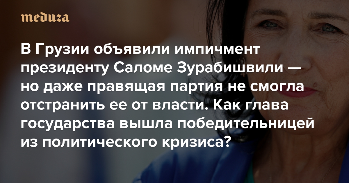 В Грузии объявили импичмент президенту Саломе Зурабишвили — но даже правящая партия не смогла отстранить ее от власти Как глава государства вышла победительницей из политического кризиса?