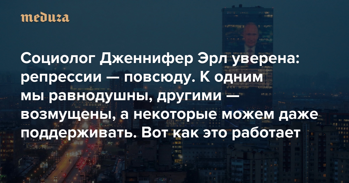 Социолог Дженнифер Эрл уверена: репрессии — повсюду. К одним мы равнодушны, другими — возмущены, а некоторые можем даже поддерживать Вот как это работает