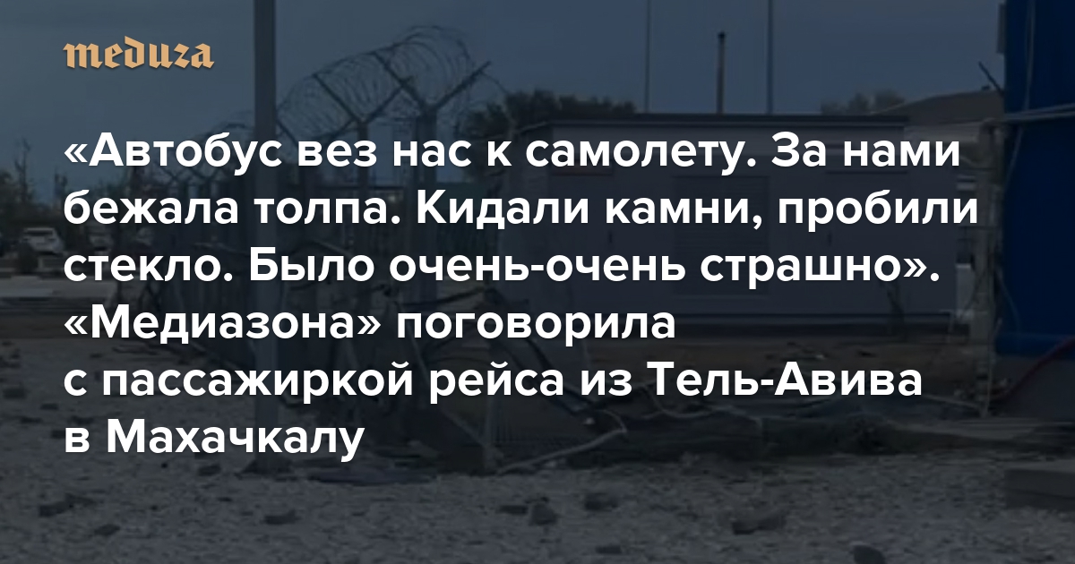 «Автобус вез нас к самолету. За нами бежала толпа. Кидали камни, пробили стекло. Было очень-очень страшно» «Медиазона» поговорила с пассажиркой рейса из Тель-Авива в Махачкалу