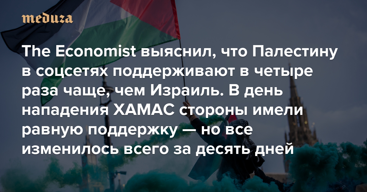 The Economist выяснил, что Палестину в соцсетях поддерживают в четыре раза чаще, чем Израиль В день нападения ХАМАС стороны имели равную поддержку — но все изменилось всего за десять дней