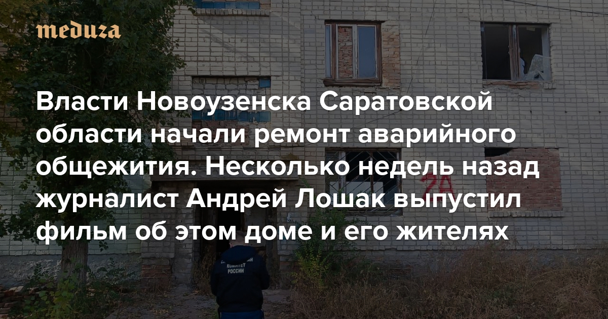 «Меньше всего рассчитывали на хеппи-энд» Власти Новоузенска Саратовской области начали ремонт аварийного общежития. Несколько недель назад журналист Андрей Лошак выпустил фильм об этом доме и его жителях