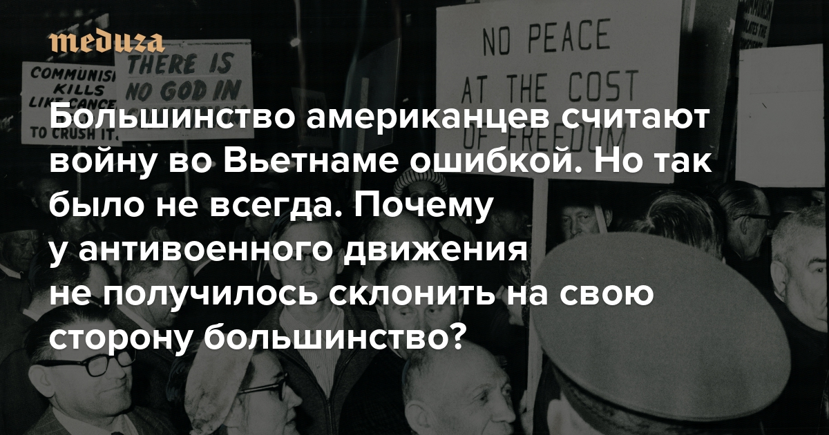 Большинство американцев сегодня считают войну во Вьетнаме ошибкой. Но так было не всегда — во время самой войны общество ее поддерживало Почему у антивоенного движения даже в 1960-е не получилось склонить на свою сторону большинство?