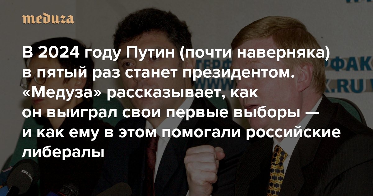 Они боялись диктатора. И сами привели его к власти В 2024 году Путин (почти наверняка) в пятый раз станет президентом. «Медуза» рассказывает, как он выиграл свои первые выборы — и как ему в этом помогали российские либералы