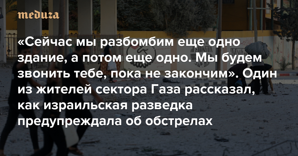 «Сейчас мы разбомбим еще одно здание, а потом еще одно. Мы будем звонить тебе, пока не закончим» Один из жителей сектора Газа рассказал «Би-би-си», как израильская разведка предупреждала об обстрелах — чтобы люди могли эвакуироваться