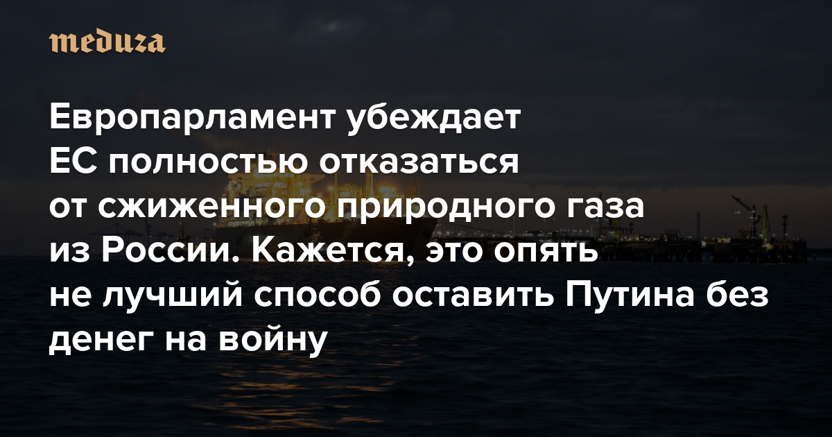 Европарламент убеждает ЕС полностью отказаться от сжиженного природного газа из России. Кажется, это опять не лучший способ оставить Путина без денег на войну