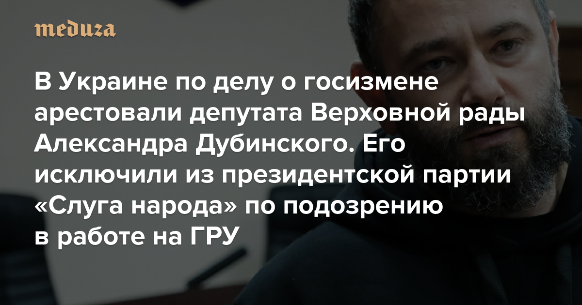 В Украине по делу о госизмене арестовали депутата Верховной рады Александра Дубинского Его исключили из президентской партии «Слуга народа» по подозрению в работе на ГРУ и вмешательстве в выборы в США