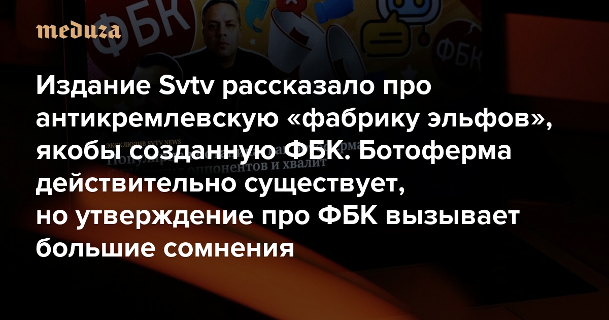 Источник, знакомый с авторами текста, вышедшего в Svtv, сообщил «Медузе», что его написали бывшие сотрудники «фабрики эльфов», недовольные условиями работы. Как этот текст оказался в распоряжении Svtv, источник тоже не знает. По его мнению, архив подтверждает существование организации, однако никак не доказывает связь «фабрики эльфов» с ФБК. «Это натягивание совы на глобус, — говорит источник „Медузы“, знакомый с авторами материала. — Это очень сырой текст, который надо было доработать».