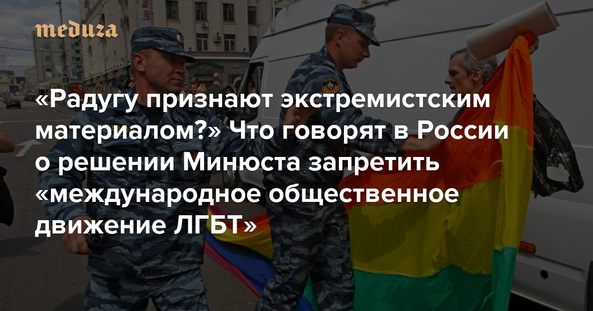 Минюст России 17 ноября сообщил, что направил в суд иск с требованием объявить «экстремистской организацией» и запретить в России «международное общественное движение ЛГБТ». Что такое «ЛГБТ-движение», кто им руководит и какова его организационная структура, ведомство не пояснило, но увидело в его деятельности признаки «экстремистской направленности». Рассмотрение иска в Верховном суде начнется 30 ноября. «Медуза» собрала реакции журналистов, политиков и блогеров на инициативу Минюста.
