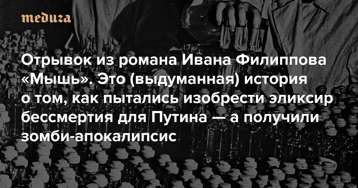 Хотя бы до 120 лет Владимир Владимирович дожить бы очень хотел Отрывок из романа Ивана Филиппова «Мышь». Это (выдуманная) история о том, как пытались изобрести эликсир бессмертия для Путина — а получили зомби-апокалипсис